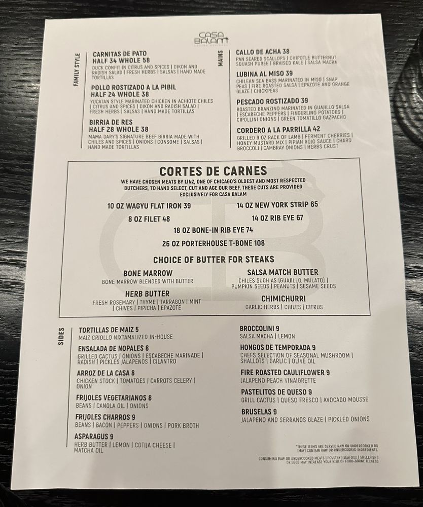 Casa Balam Menu